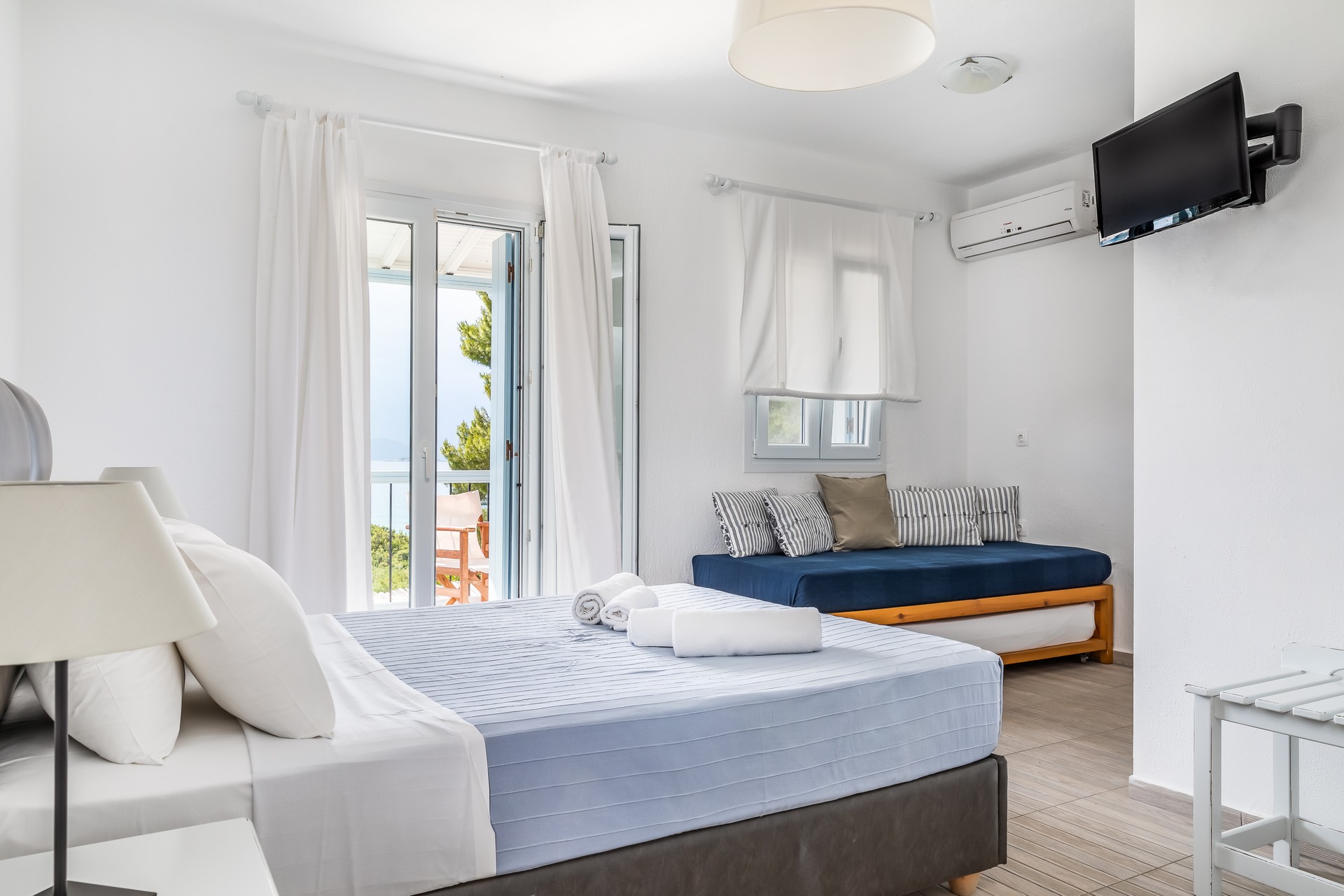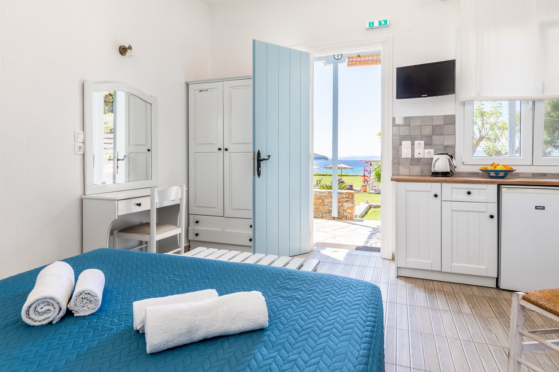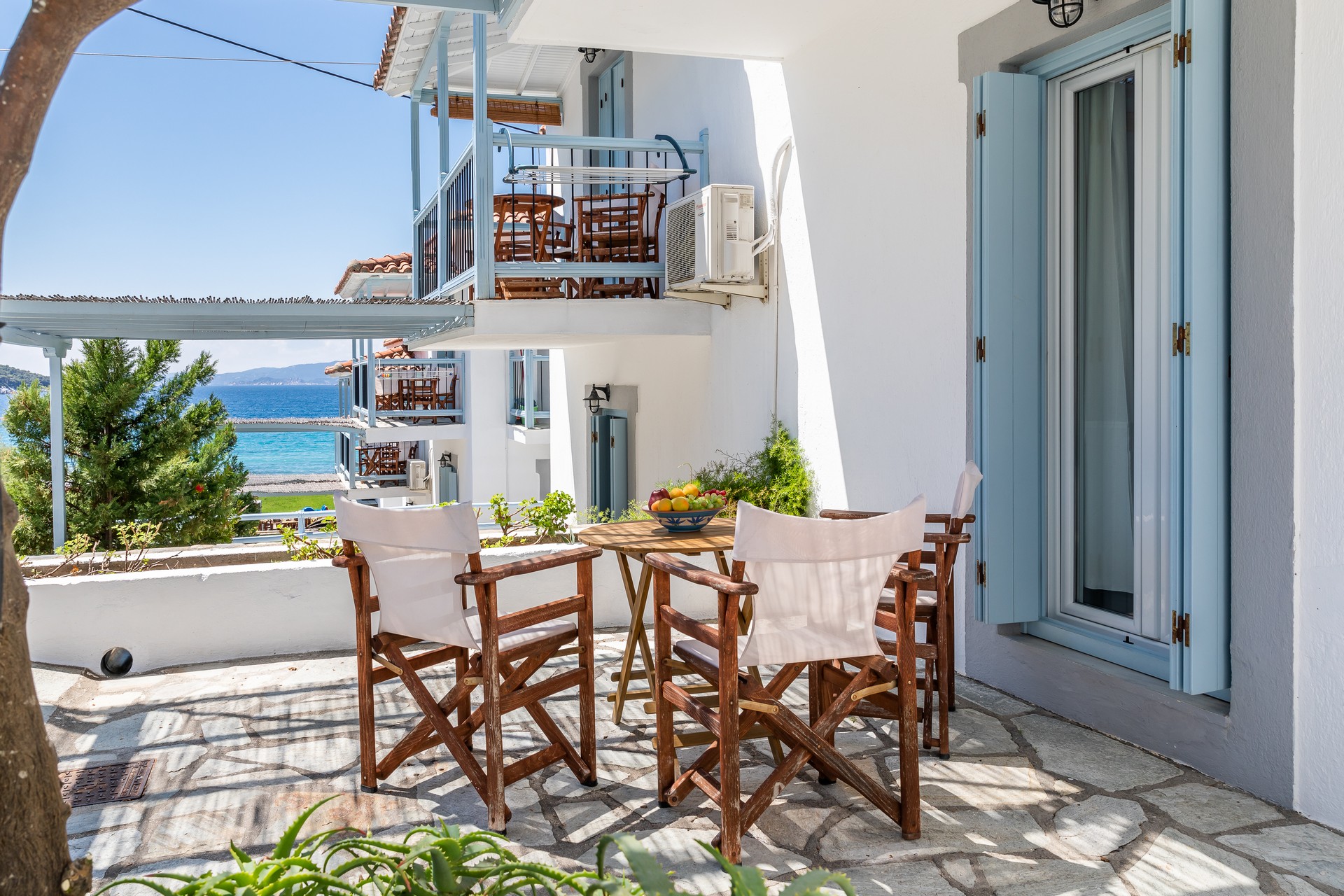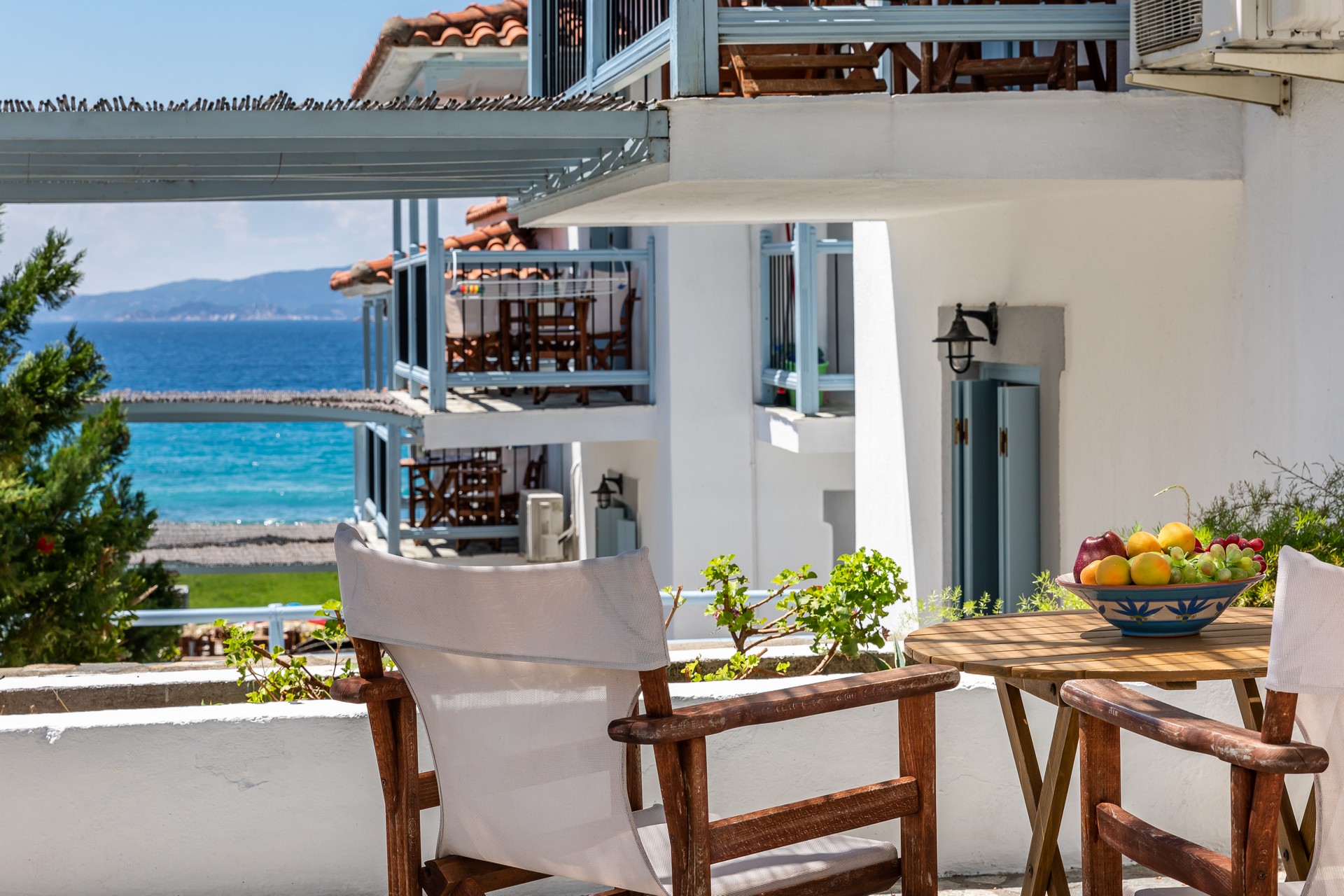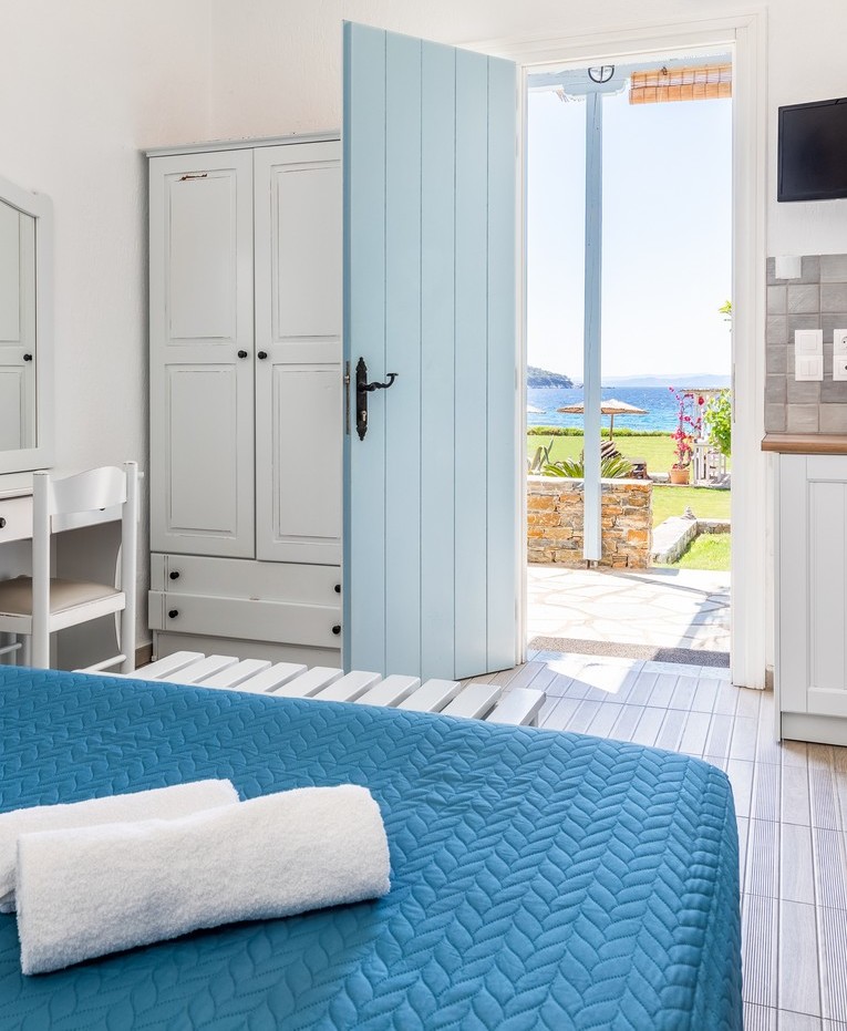 All apartments have spacious verandas or balconies with beautiful views of the Aegean Sea, air conditioning, free Internet access, free parasols and sun loungers on the beach.