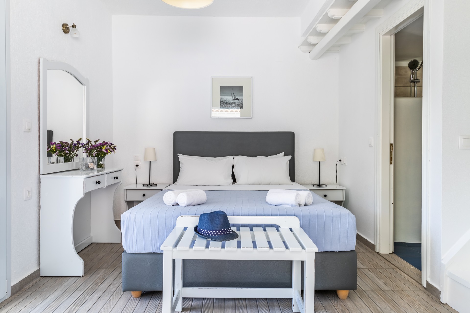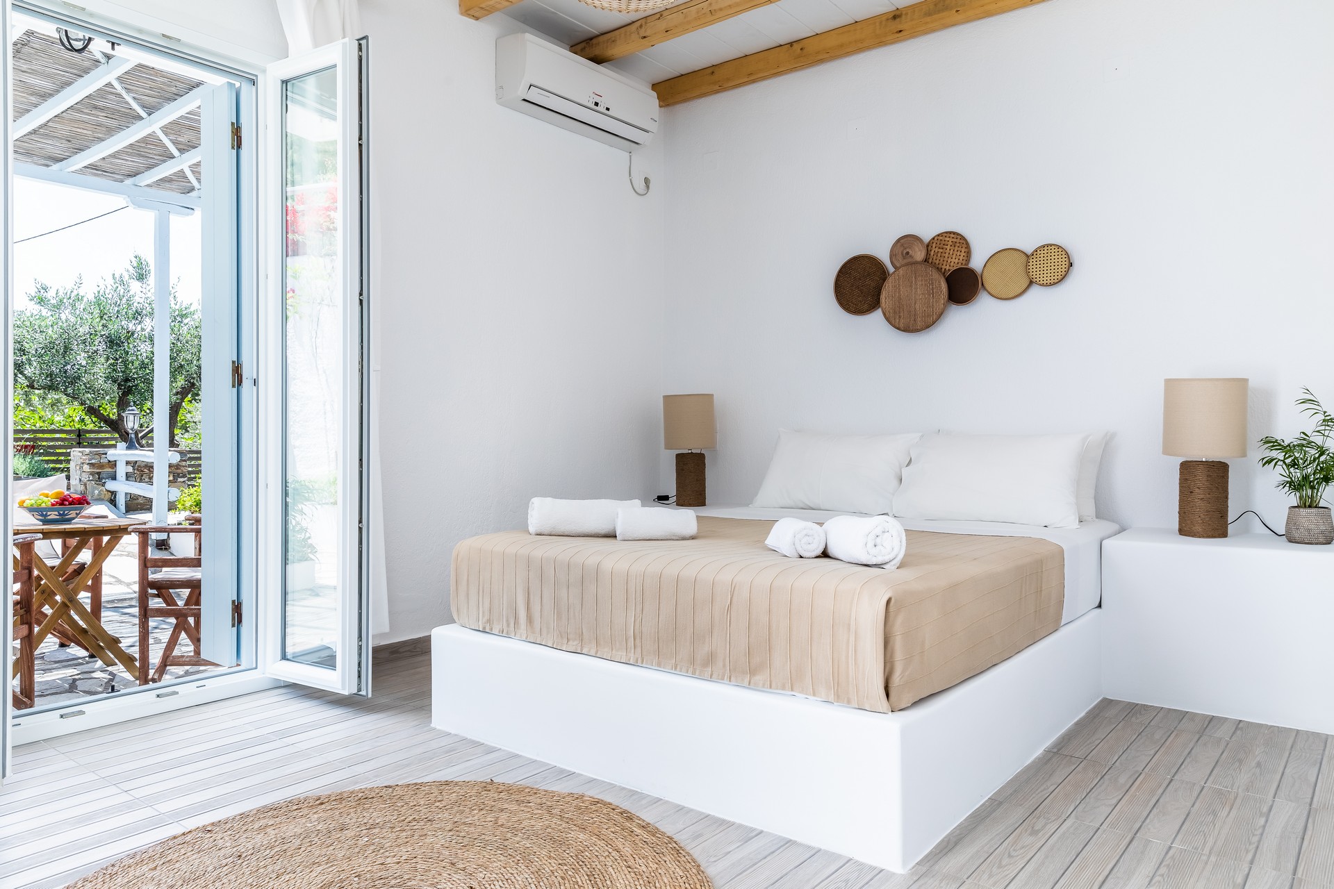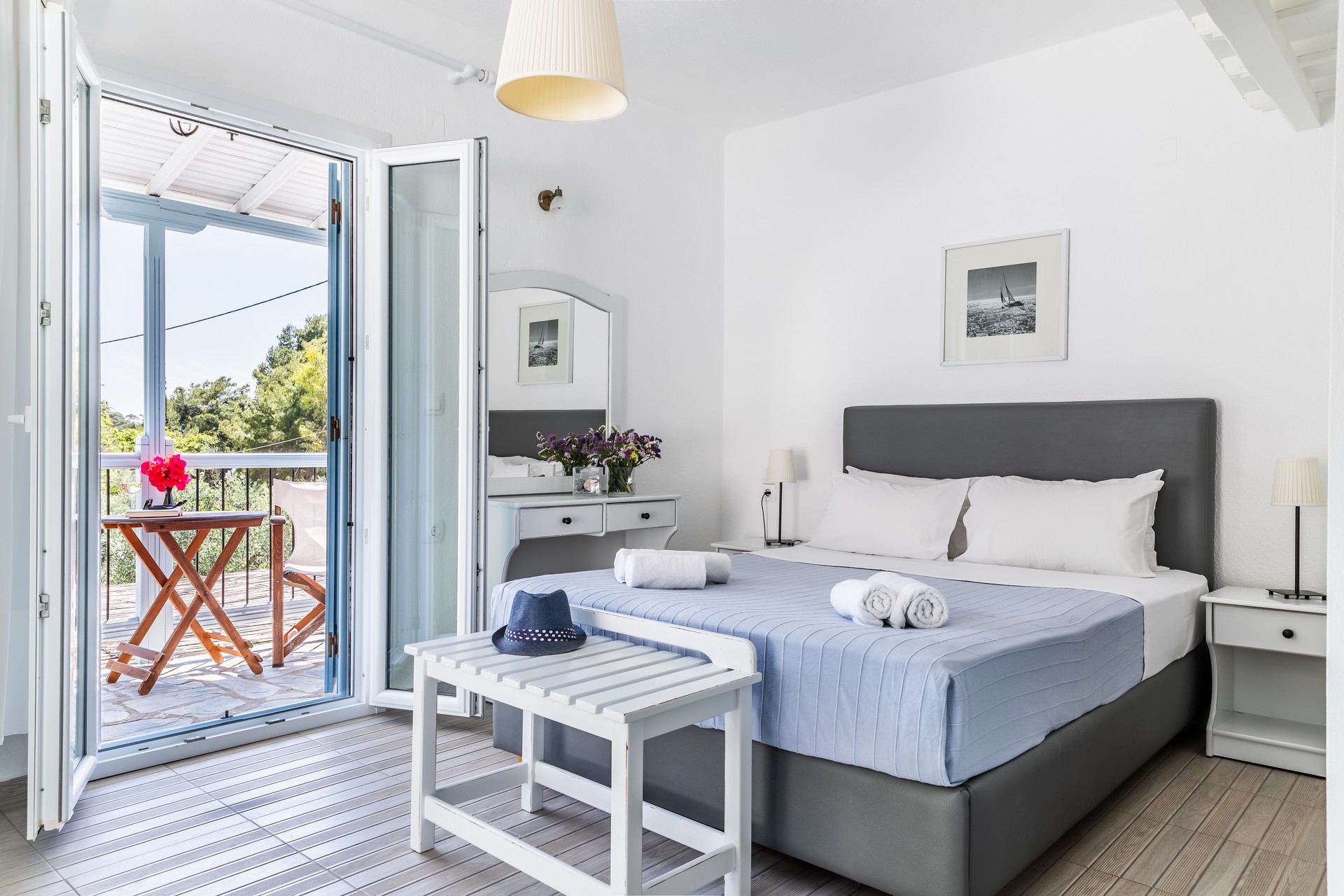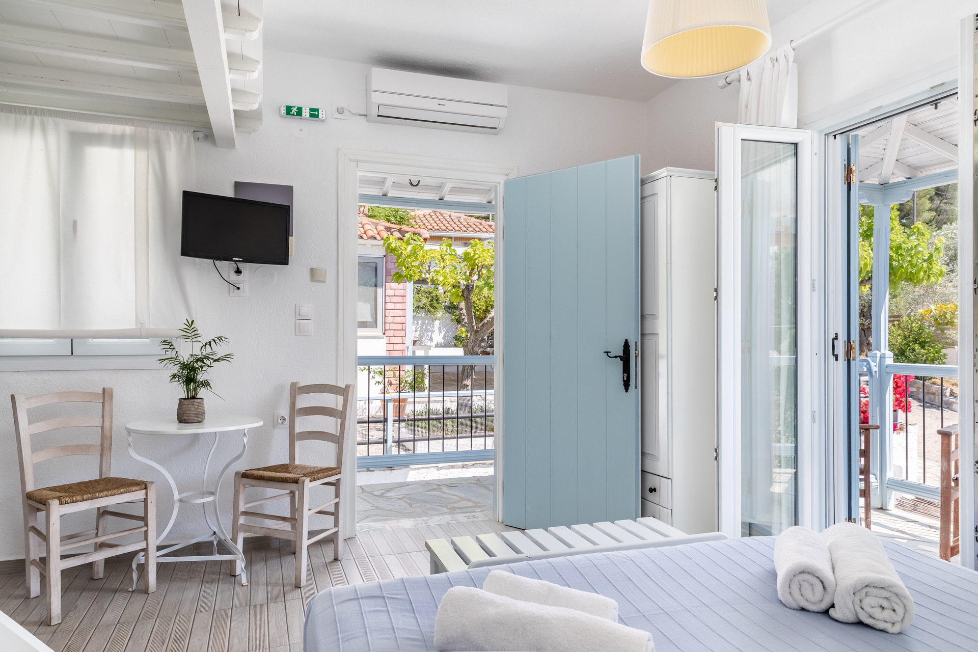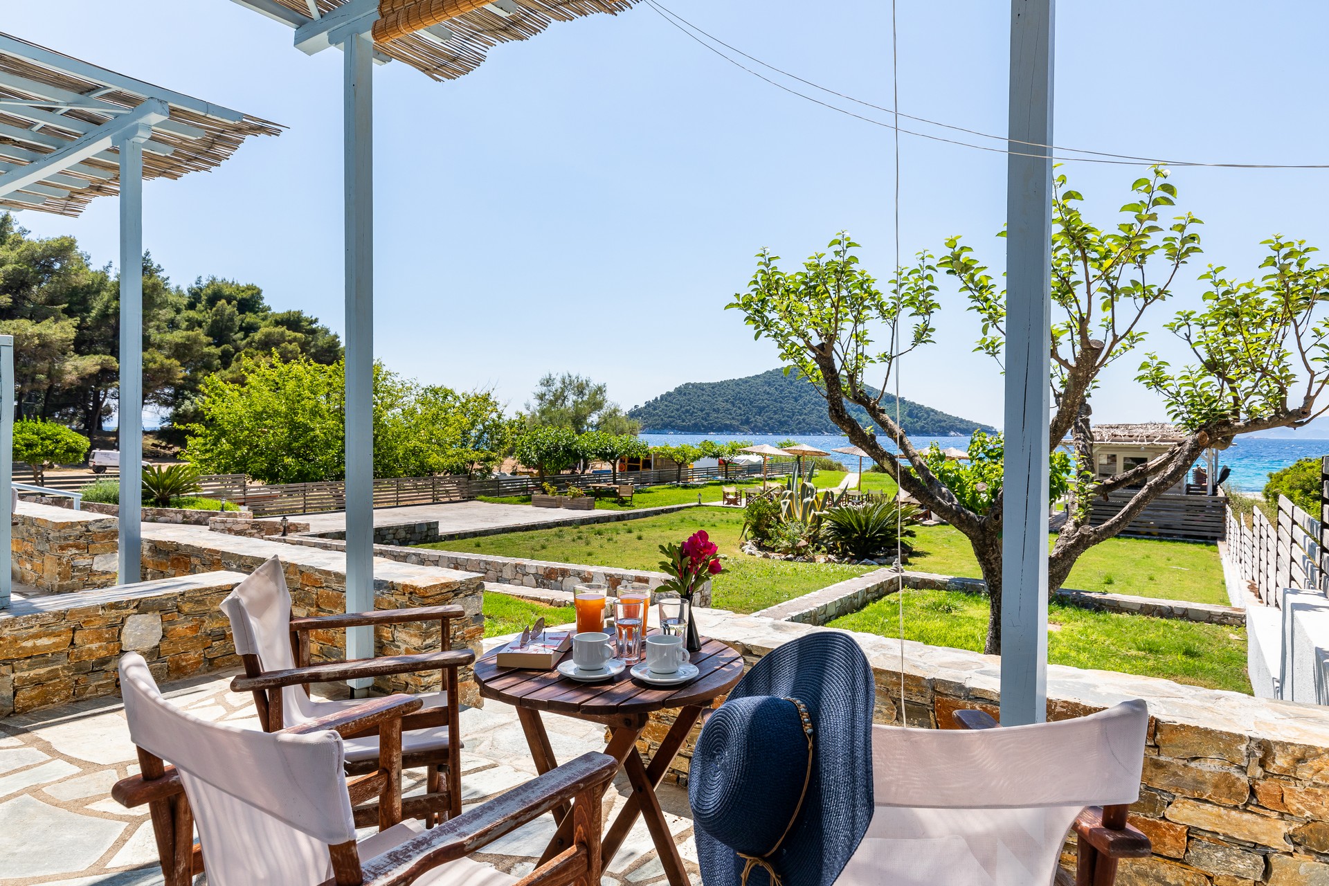 All apartments have spacious verandas or balconies with beautiful views of the Aegean Sea, air conditioning, free Internet access, free parasols and sun loungers on the beach.