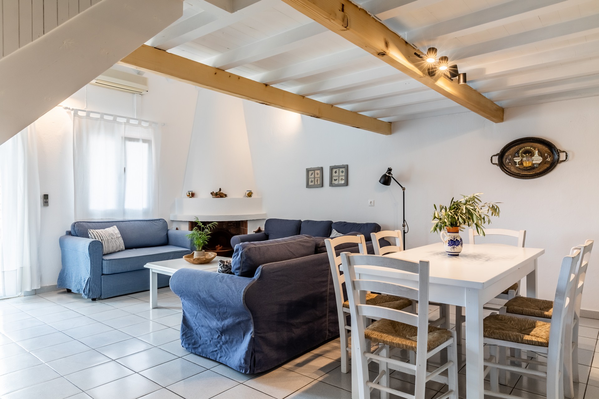 It is 1 ½ km from Panormos Beach, 1 km from the famous Kastani Beach (Mamma Mia Beach), 12 km from Skopelos Town and 15 km from the second port of the island, Glossa.